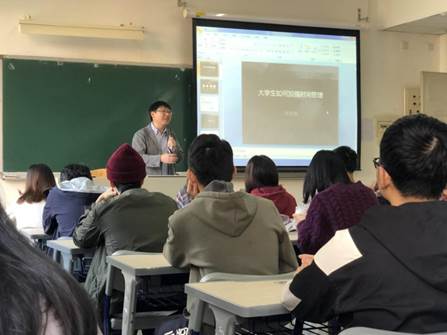 刘胜老师首先从学习、爱情、生活等方面出发,结合身边实际例子,深刻分析了当代大学生的心理状态,提出了大学生活几个主要目标,准确把握本科大学生目前的生活状态,总结概括了大学生的各种大学生活方式。随后点出大学生在时间管理、逻辑训练、超前消费及毕业论文等方面的要求,语句准确精辟,给予在校大学生极大的启发。