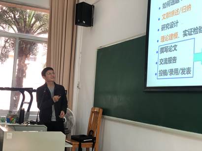 2019年12月30日下午14:00,由金融学院举办的本科生科研训练营第一讲《文献归纳、研究范式与理论模型入门》在教学楼D104教室开讲。本科生科研能力训练营旨在为金融学院学生普及科研知识与科研方法,培养学生的科研兴趣和科研能力。