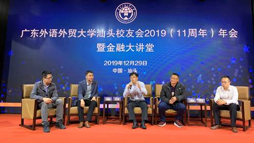 本网讯 12月29日,应汕头校友会邀请,我院院长、“广外校友企业教授服务团”成员易行健、党委副书记赵观音、金融学系系主任许振国等一行参加汕头校友会2019(11周年)年会暨金融大讲堂活动。我校汕头校友会会长陈少华(1992级秘书专业校友)、常务副会长林佳如(1992级国贸专业校友)、副会长兼秘书长姚嘉敏(1998级国贸专业校友)等热情的接待了我院一行。