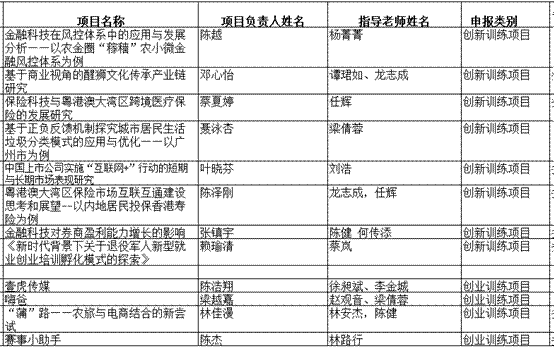 2020年6月5日,经过动员、申报、评审及公示环节,金融学院2020年“大学生创新创业训练计划项目”(以下简称“大创”)完成院内评审,最终共确定12个项目(创新训练项目8项、创业训练项目4项),这些项目下一步将参加校级评审,择优立项。学院初审通过项目名单如下: