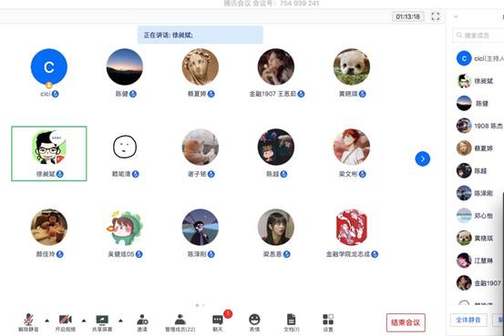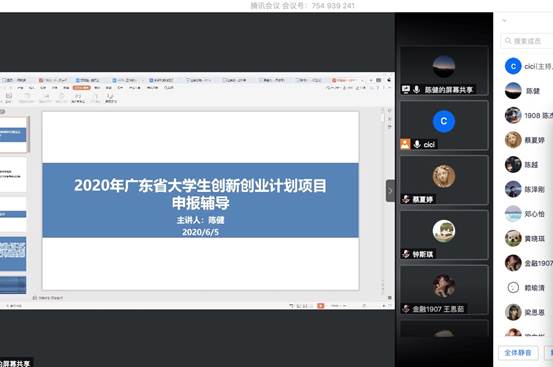 交流会在腾讯会议平台进行,邀请到金融学院党委书记徐昶斌、资深“大创”指导教师陈健、2019年“大创”校级优秀项目团队代表吴健炫、霍嘉星做分享交流发言。