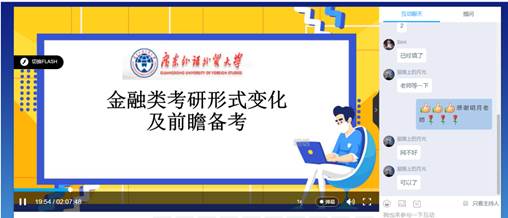 7月20日晚上,聚创考研金牌规划专家李明月老师利用在线直播平台为金融学院的学生带来一场《疫情之下,金融类考研形式变化及前瞻备考》精彩讲座。