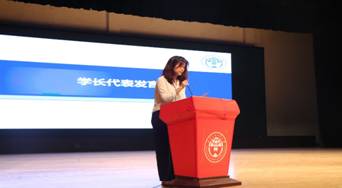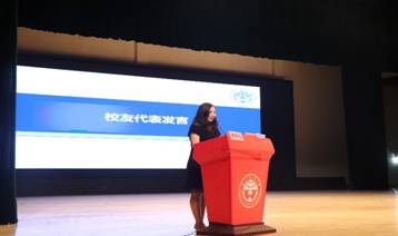 2016届毕业生校友代表黄旖瑶分享了她在广外的四年,建议同学们要主动学习,用好学校图书馆等资源平台,把握好珍贵的实践与实习机会,将广外校训内化于心,外化于行。
