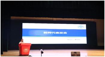 接着教师代表梁立俊发言。他指出,2020级的新生都有着一笔特殊的财富,因为新生们经历了今年困难重重的高考。他希望同学们能把握好这一笔财富,将其精神运用在以后的学习生活中。梁立俊解释了“大学生”的含义,并希望同学们能有自己的格局,将目光放长远,迎接大学中的诸多挑战。