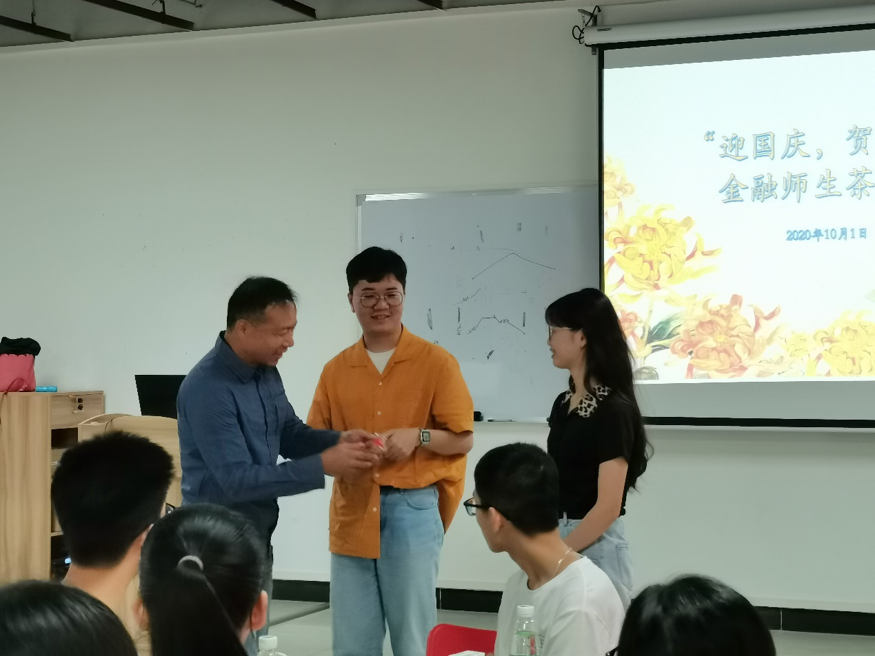 10月1日上午,金融学院在南校学活3楼307学生多功能活动室举行“迎国庆•贺中秋”金融师生茶话会。学院党委副书记赵观音出席会议,金融本科和研究生留校新生参加会议,辅导员梁倩蓉主持会议。
