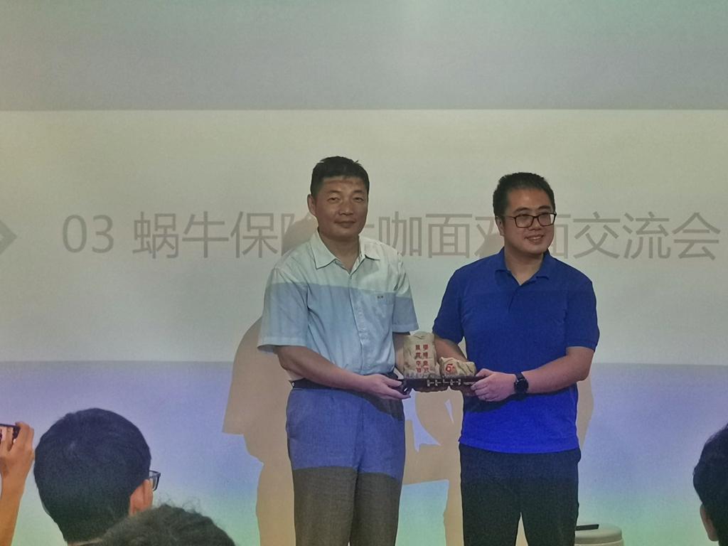 最后,任辉老师对本次参观做出总结,高度评价了蜗牛保险公司的运营方式和运营理念,并代表金融学院向蜗牛保险创始团队赠送了广东外语外贸大学纪念品,表达了对互联网保险行业未来发展的美好祝愿。与此同时,也希望通过本次参观活动,让同学们对互联网保险公司的运行方式有一个更深入的了解,期望同学们利用学校提供的宝贵资源与平台,多多接触学习保险行业的发展风口,为未来的发展确定更为清晰的目标,拥有更加精彩的人生。