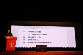 许振国从毕业论文撰写的目的、论文的分类、两大核心方法论和论文结构进行阐述,最后详细讲解了论文的撰写步骤。任辉从毕业论文用户登录、如何修改密码、学生选题、开题报告提交的两种方式、毕业论文提交的两种途径、答辩申请的提交、答辩安排的查看和成绩的查看等方面进行详细讲解。张群从关于广外毕设相似性检测工作要求、论文作者学术规范、文献检索的技巧三个方面进行进行阐述,强调同学们要注意避免学术不端行为。 最后吴柏毅从研究什么问题、研究的问题为什么重要、其他学者做了什么、自己做了什么、自己做的东西的价值五个问题阐述毕业论文的答辩要点。