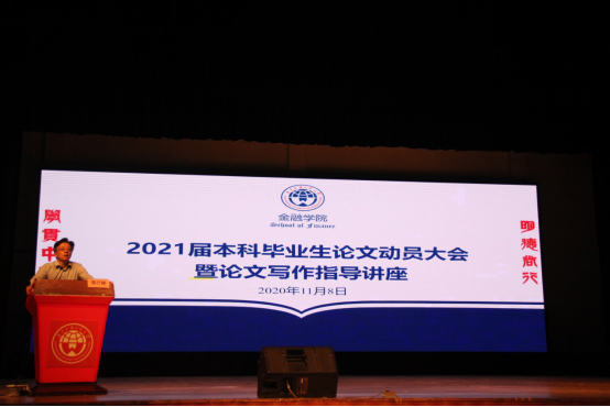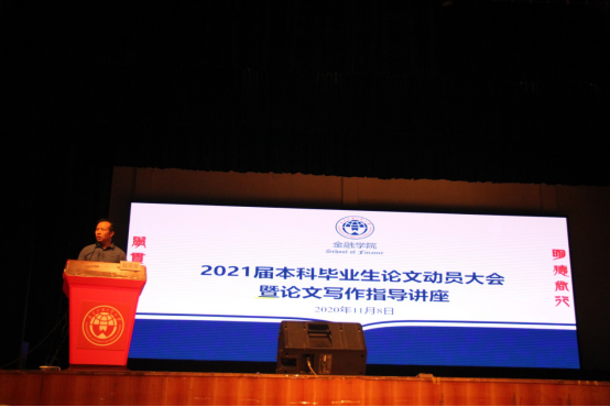 11月8日晚,我院2021届本科毕业论文动员大会暨论文写作指导讲座在南校区大会堂举行,院长易行健、党委书记徐昶斌、金融学系系主任许振国、保险学系系主任任辉、金融工程系系主任张群、投资与理财系系主任吴柏毅、2017级辅导员林路行及2021届全体本科毕业生出席会议,会议由学院党委副书记赵观音主持。大会同时采用网络直播方式,为不能到场参加会议的毕业生提供观看平台。