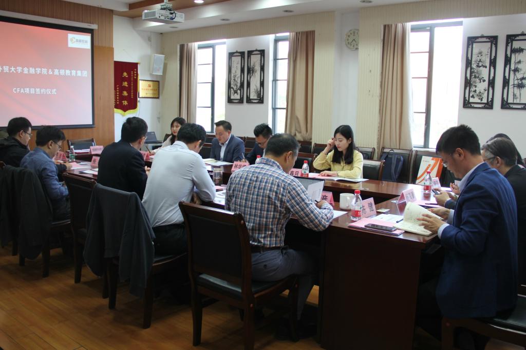 11月30日,我院与高顿教育集团合作开办CFA实验班项目签约仪式在南校区举行,高顿教育集团副总裁舒畅、高校事业部华南区总监林华壤、销售经理黄晓君、项目专员肖春月;我院院长易行健、党委书记徐昶斌、副院长张浩、杨菁菁、党委副书记赵观音以及院长助理张林、学院办公室主任陈健、高顿CFA项目联络人梁倩蓉出席仪式,仪式由我院副院长展凯主持。