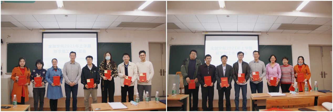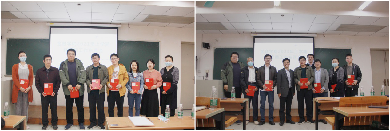 最后,会议对金融学院2020年工作突出贡献奖的获得者进行了表彰,学院领导为各位获奖老师颁发荣誉证书。