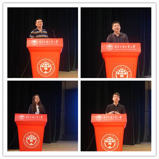 稍后由教学副院长杨菁菁教授对此次专业分流方案进行专题解读。杨菁菁副院长在发言中首先对我院专业分流工作的历史进行了简单梳理和回顾,对此次金融大类分流专业的金融学、保险学、金融工程、金融学(投资与理财)四个专业(方向)的特色进行了简单介绍,并就同学和家长都关心的问题诸如分流原则、分流依据、分流计划、分流程序以及分流后的工作等都做了详细说明,让学生和家长对专业分流工作有一个全面深刻的认识和了解。其后,金融系主任许振国老师、保险系主任任辉老师、金融工程系主任张群老师、投资与理财系主任吴柏毅老师等先后向与会同学详细介绍了各自负责专业(方向)的基本情况和培养特色,并表达了对同学们选择本系专业的殷殷期待和热情欢迎。在稍后的现场提问环节,面对学生的提问,学院书记徐昶斌、院长易行健、副院长展凯等都纷纷上台,对学生所关心和疑惑的问题都热情地给予了详细、专业的解答。整个动员大会现场气氛热烈。