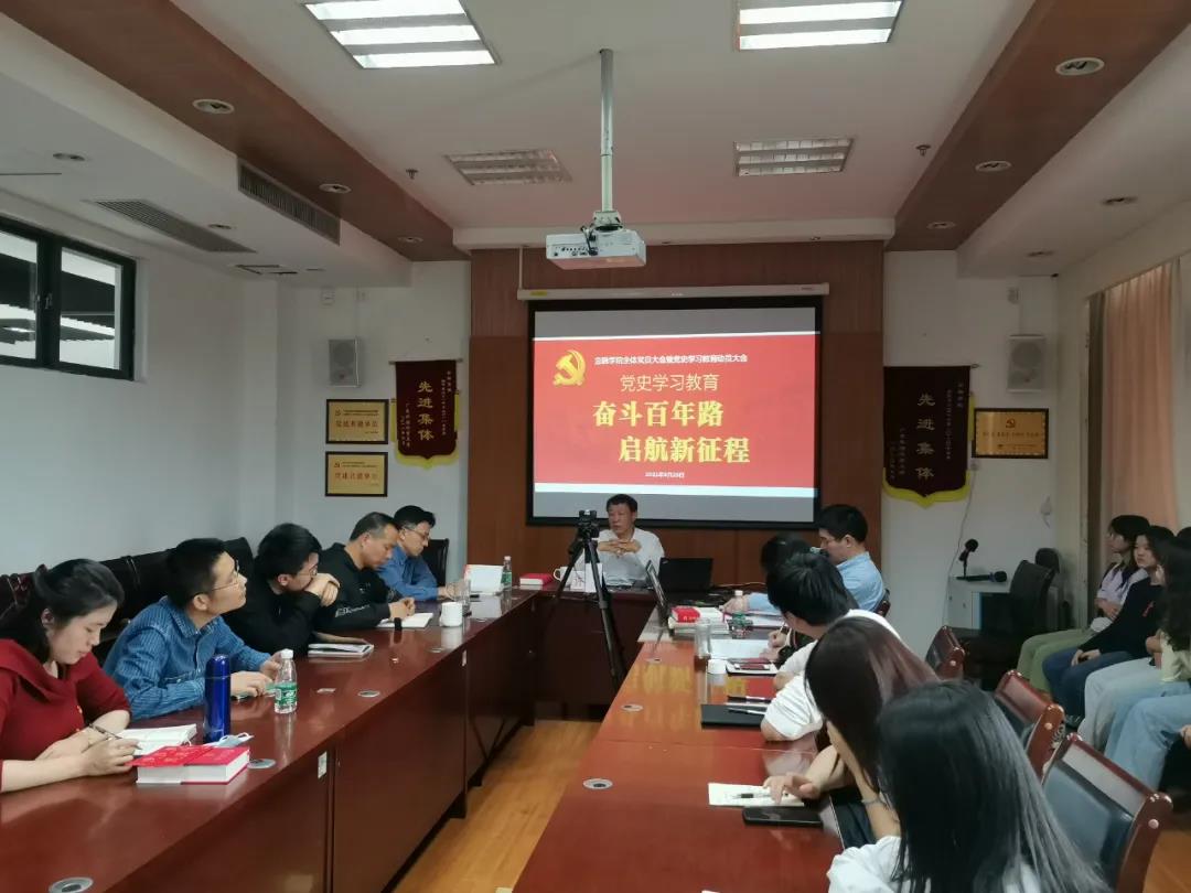 徐昶斌传达中央、省及学校关于开展党史学习教育的要求和精神。他指出,要从打造一流学科、建设一流专业、培育一流人才出发,充分认识开展这次党史学习教育的极端重要性和现实紧迫性,切实增强开展好党史学习教育的思想自觉、政治自觉和行动自觉。全院党员干部师生要坚持追求卓越,立足学院(学科)实际与特色,高质量高标准开展党史学习教育,把党员干部师生在学习教育中激发的工作热情和进取精神转化为高质量发展的强大动力和显著成效。此外,他还对党史学习教育“七个一”活动内容进行解释说明,表示学院将会根据学校基本精神和部署要求,结合学院实际,扎实推进和认真落实各项学习教育活动。最后他希望全院师生党员、积极分子、学生骨干能够密切关注学院后续安排,积极踊跃参与活动,高标准高质量地完成学习教育各项任务,以优异的成绩迎接建党100周年。