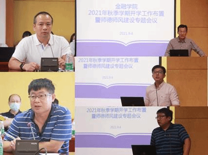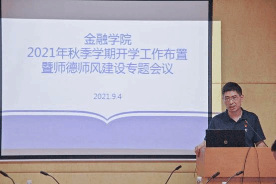 9月4日下午,我院在南校区召开2021年秋季学期开学工作布置暨师德师风建设专题会议。院长易行健,党委书记徐昶斌,副院长展凯、张浩、杨菁菁,党委副书记赵观音,华南财富管理中心研究基地常务副主任战明华以及全体教职工出席了本次会议。会议由展凯主持。