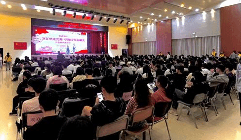 11月19日晚,由金融学院党委主办、金融学院党建服务中心承办的“回望百年建党路 寻迹红色金融史”金融学院第八届党支部活力大赛之特色组织生活会在南校区学生活动中心二楼多功能厅顺利举行。本次大赛邀请了我校原党委副书记、副校长许国彬教授,商学院党委组织员向媛薇,我院金融系教工党支部书记孙玲副教授,金工学生党支部书记张桂馨,保险学生党支部书记吴凯茜担任评委。华夏银行荔湾支行党支部书记、行长黄顺,广州金融人才协会副秘书长王雪霖,我院党委书记徐昶斌,党委副书记赵观音,院办主任、党委组织员龙志成,学生党建指导老师、金投学生党支部林路行与学生(本、研)党员、入党积极分子等近300人一同观赏了丰富多彩的节目展演。