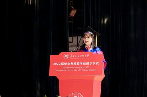 邓洁讲述了自己与毕业生在教学互动中的美好回忆,勉励同学们将母校所赋予的宝贵知识财富运用于具体的实践中,成为推动社会进步的强大动力;江京京通过视频线上发言分享在母校的美好回忆与工作中的心得体会,鼓励毕业生在未来始终怀揣理想抱负,以更好的自己迎接新的人生征程;李妙玲以家长的视角表达了对广外金融学院培育英才的感激之情及对毕业生未来的美好祝愿;毕业生代表、2018级金融工程专业毕业生陈越深情回顾了在母校母院点滴学习生涯与美好回忆,感恩伟大时代、广阔平台与悉心教导。