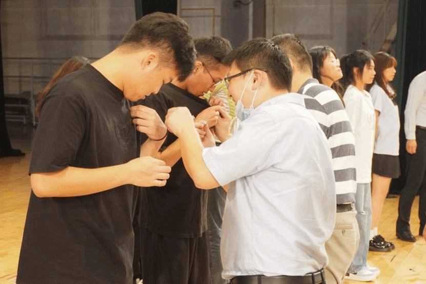 黄斌华带领全体新生庄严宣誓,领导老师上台为新生代表颁授校徽,与学生亲切交谈,勉励学生学有所成、不负青春。