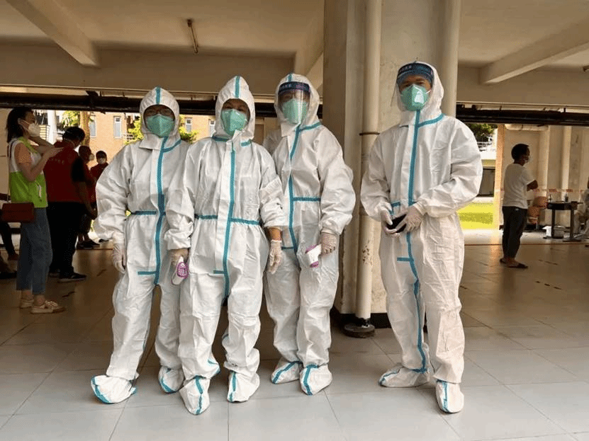 学院党委充分发挥党员干部模范带头作用,我院任辉、许振国、余艳莉、关晓红、朱华琳、卢万青、张瀚文、梁裕珩、龚高叶、丁宇刚、龙志成、王希、李鸿杰等多位老师积极响应,加入学校教工志愿者队参与志愿服务,其中包括共产党员13人。“双带头人”党支部书记任辉教授多次请缨,主动申请从大学城外返校支援核酸检测服务。许振国、余艳莉、关晓红、朱华琳、张瀚文、梁裕珩、龙志成、龚高叶等人在日晒高温天气下,穿上密不透风的防护服参与志愿服务工作。