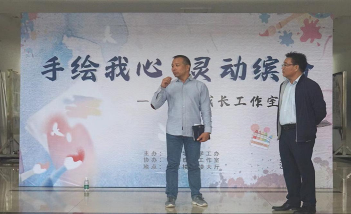 赵观音介绍了工作室的基本情况。他表示,工作室包含强体和健心两大活动板块。本次画展汇聚了工作室阶段性成果,通过原生艺术创作这种创新有趣的形式,将看不见的学生心理活动转化为可见、可分析、可评估的材料,拓宽团队成员了解学生、走进学生的渠道。同时,学生通过工作室的活动,能更好地探索自我,认识自我,实现身心融通,提升身心素质。
