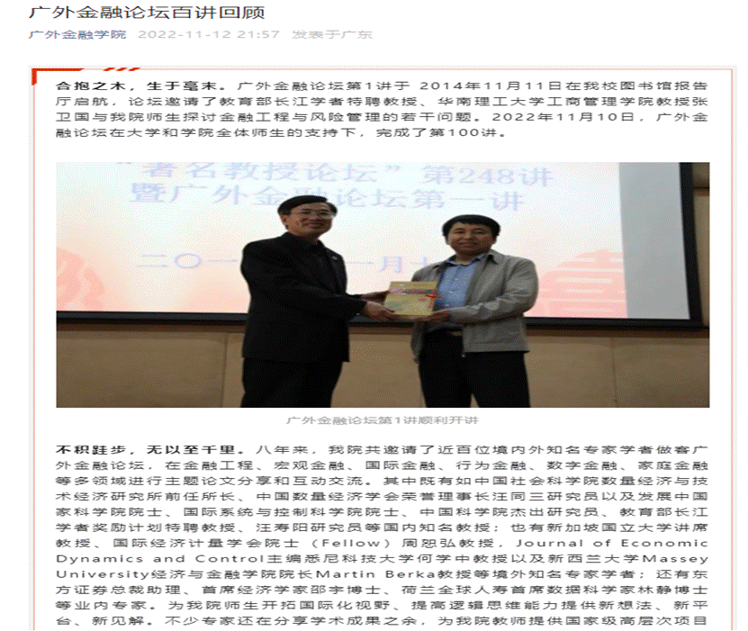 广外金融论坛”累计举办场次破百,为院内外提供了优质学习平台