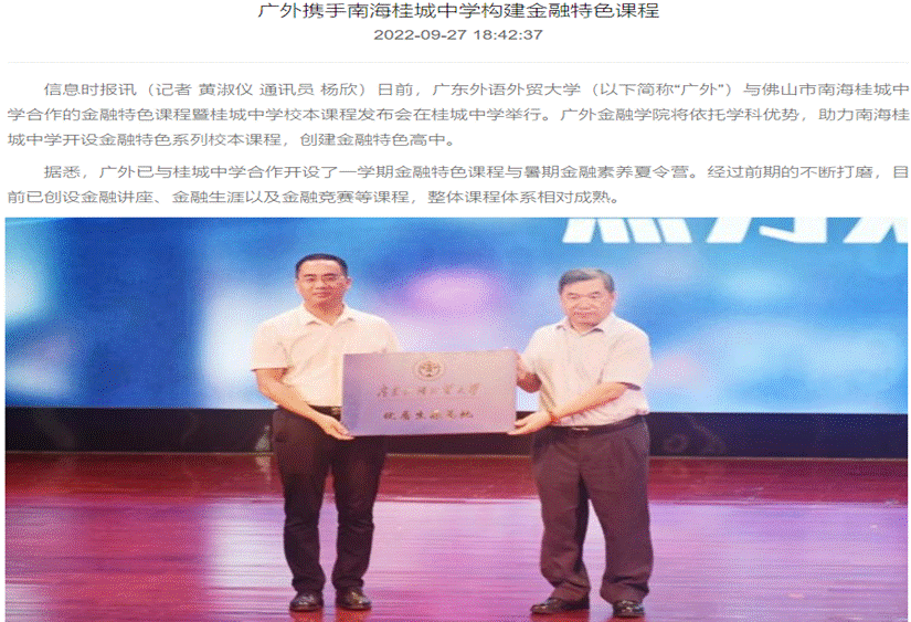 2022年,学院申报的《金融科技背景下校企金融科技微专业的建设与探讨》(主持人:展凯教授)及《新文科背景下金融学院实践教学师资培训》(主持人:杨菁菁教授)成功获批教育部产学合作协同育人项目立项。学院历来重视产学合作、协同育人以及实践教学等领域的相关工作,此次获批教育部产学合作协同育人项目,也是学院在校企协同育人领域的再一次创新与突破。此外,《金融工程学》被认定为广东省一流本科课程。目前学院共有《货币金融学》《保险学》《金融工程学》三门省级一流本科课程,以及《货币金融学》《财富管理》两门省级课程思政示范课程。学院将继续提升课程的“两性一度”,持续推进国家级和省级一流本科课程的建设与培育工作。