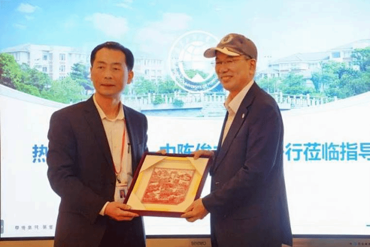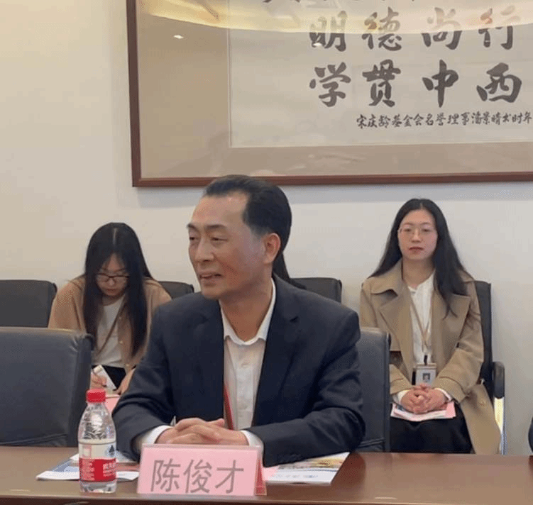 会前,学校党委常委、副校长何传添会见了陈俊才一行,双方亲切交流并互赠纪念品。