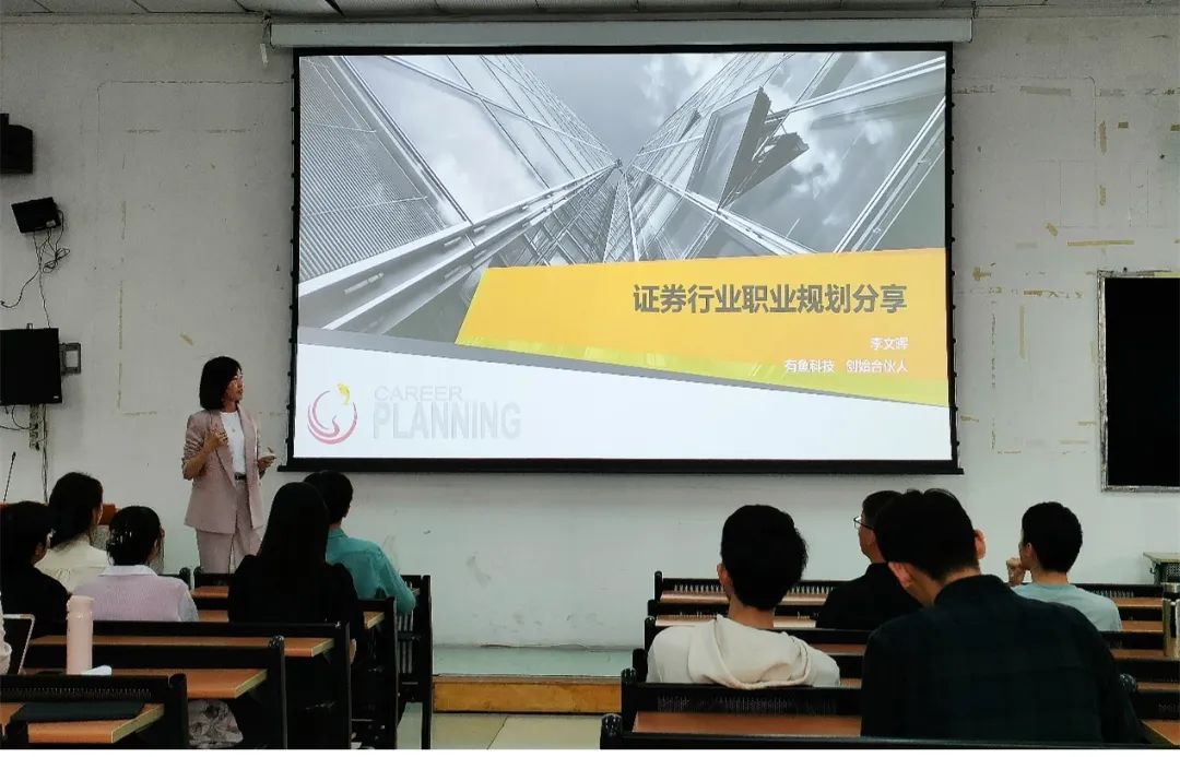 李文晖(有鱼科技创始合伙人;曾任广证恒生证券研究所董事会秘书兼战略拓展总监;时代伯乐创投市场拓展总部执行董事)围绕“证券行业职业规划”展开分享。她分享自己在广外的求学故事,讲述了自己是如何从一位普通高翻生成为一名优秀的证券分析师,她对同学们也提出了自己的希望,期待同学们能够抓住机遇并不断地实现自我增值。李文晖详细地介绍了证券行业职业发展方向和上升通道,并针对常见的疑惑作了解答,分析证券分析师与各方的关系,纠正了同学们的某些刻板印象。