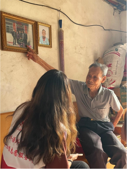 本次乡村振兴调查研究主题党日活动,双创中心党支部率两支志愿服务队成员走进乡村田间地头和百姓家中,与百姓进行面对面的交流。团队成员认真聆听他们的意见和诉求,同时也讲述红色文化创新能够带来的文化和经济效益,老百姓纷纷表示理解支持,同时为团队开展工作提供创新思路。