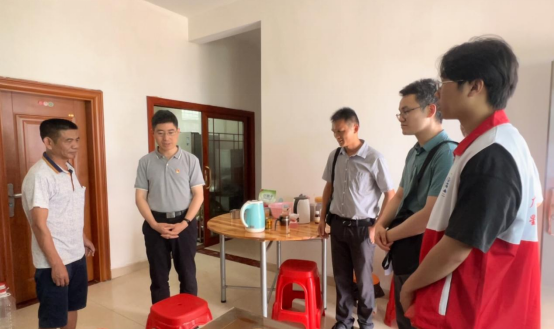 下午,在驻镇干部和村干部的陪同下,徐昶斌一行前往草田坪新村慰问当地脱贫户。徐昶斌带领师生党员深入村民家中,了解他们改善后的居住生活条件,亲切询问了村民生活上的难处,代表学院党员师生向他们表达关怀与慰问。