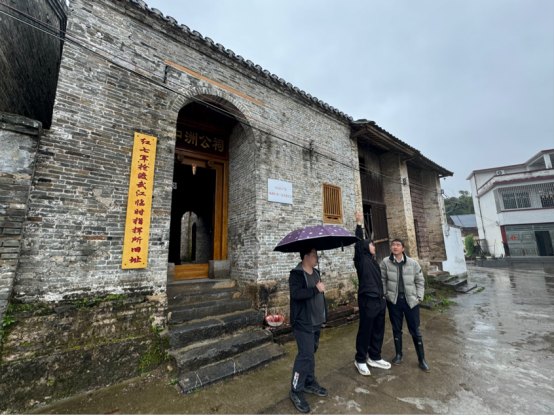 随后,商杰强带领双创党支部师生一行前往杨溪村红七军强渡武江临时指挥所旧址,在实地调研中充分地讨论场馆的布局设计和产品应用的可行性方案,并在此基础上,深入探讨了红七军红色旅游资源的开发利用问题。