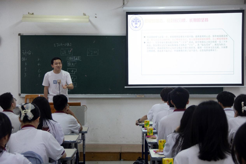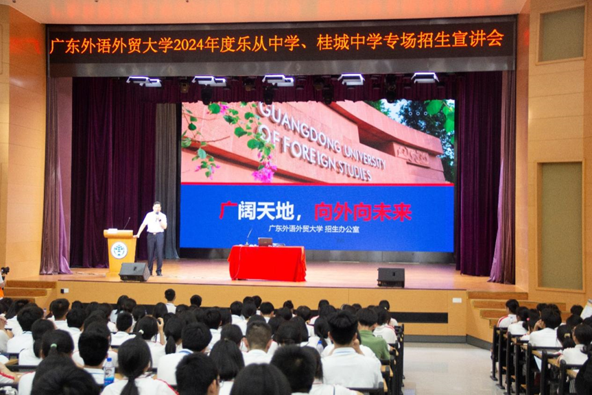 下午,桂中师生(与来自顺德乐从中学的师生共同)在B8学术报告厅参加由招生办主办、国际关系学院承办的招宣专题讲座。我校教务部部长、招生办主任陈金诗配合内容丰富、制作精美的PPT向中学师生全面、深入介绍了广外,着重介绍了学科专业情况并详细解读了招生政策。徐昶斌则以“学科·专业·职业——新高考背景下高中生面临的生涯决策”为题为中学生开展职业生涯规划及高考志愿填报指导讲座,引导大家理性思考高中与高校的衔接,主动探索个人能力个性优势与接下来高考志愿填报、专业选择、职业发展的联动,以期更好地助力个人成长成才。