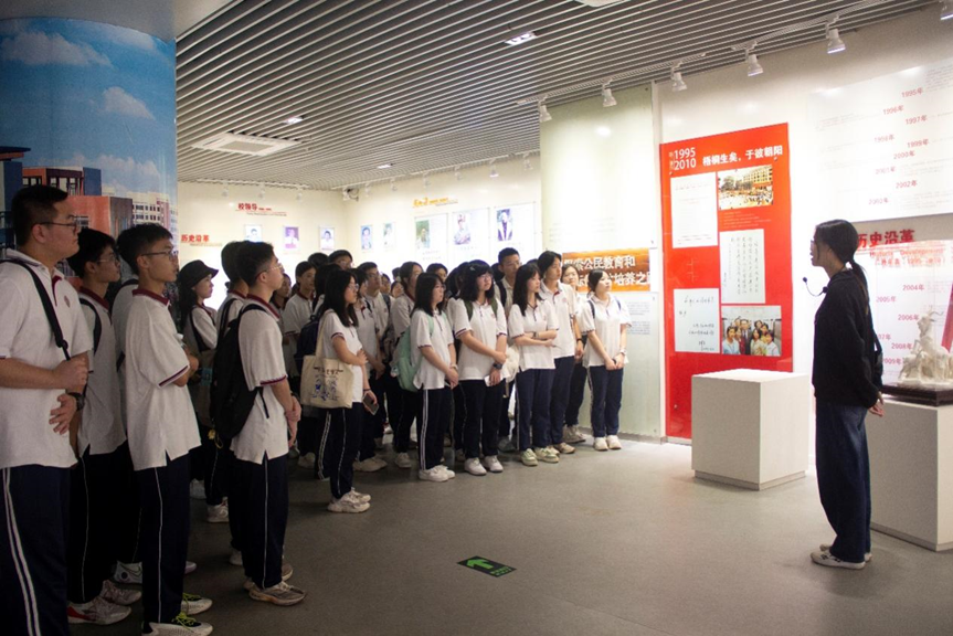 上午,桂中师生一行首先参观了位于大学城校区图书馆的校史馆。通过校史馆讲解员的娓娓道来,师生一行深入了解广外的发展历程、学科专业建设沿革、人才培养特色优势与优秀校友发展等综合情况,高中学子们深深感受到历代广外人的初心使命和责任担当。