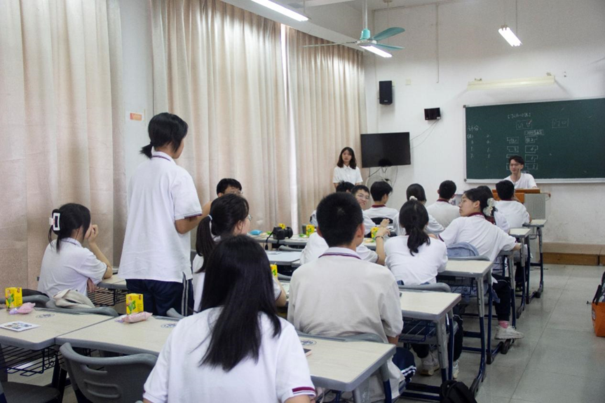在随后举办的“优秀学长学姐座谈沙龙”,“双料校友”、高中毕业于桂中的我院本科生、团委秘书长李婉怡以及优秀学生代表黄广钜、陈志钧向桂中学弟学妹介绍了丰富多彩的大学生活、校园活动以及自己的专业学习情况,并有针对性地分享了学习心得体会、兼顾学业与学生工作的理念与方法。桂中学子们也踊跃提问互动,现场气氛热烈。此外,获评校级“优秀暑期社会实践服务队”的“三下乡”堇熙服务队成员莫恩岚介绍了近两年在桂中开展金融素养主题夏令营的基本情况,鼓励同学们积极参与,在丰富精彩的活动中提升自身的金融素养。