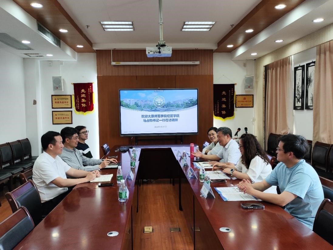 为进一步推动一流专业建设,加强课程建设信息交流,完善人才培养方案,4月12日上午,太原师范学院经济与管理学院党委书记马占钧率信用管理专业教研室教师团队来访我校,受到我院院长展凯、党委书记徐昶斌、副院长杨菁菁、副院长邓超的热情接待,双方在学院会议室开展了热烈的互动交流。会议由徐昶斌主持。