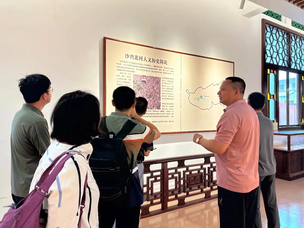 我院师生一行首先来到沙湾北村村委,参观调研当地的村史馆及非遗工艺展览馆,与沙湾北村党支部副书记何民亮开展座谈。双方就“百千万工程”合作事宜进行了深入探讨。在前期充分了解沙湾北村关于金融素养教育方面的需求和现状基础上,“金识满”金融素养教育志愿服务队针对实际情况研讨和提出了切实可行的合作方案。何民亮对我院师生的专业能力和社会责任感表示高度赞赏,并期待双方能够携手共进,共同为沙湾北村的金融素养教育注入新的活力。通过此次交流,双方进一步明确了合作方向和目标,依托广外金融学院在金融教育研究领域的专业与优势,帮助当地居民提高金融知识水平和风险防范能力,共同推动城乡区域协调发展。
