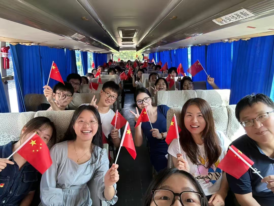 在前往纪念馆的路上,师生们满怀激情地合唱了《我爱你,中国》,用歌声表达了对祖国母亲的深深祝福。