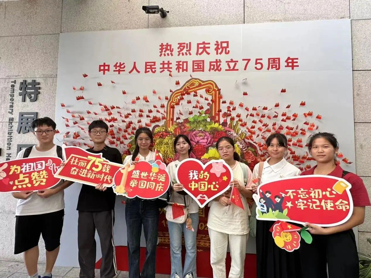 参观的同时,师生们还积极参与了纪念馆特别策划的“我为祖国送祝福”留言墙打卡和“我为祖国献红花”贺卡制作等国庆节专属活动,用自己的方式向祖国献上了美好的祝愿。