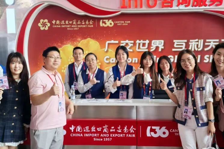 据悉,我院派出四百余名大三学子赴广交会开展专业实习实践。其中有近200名学生承担起了为境内外客商注册、审核以及办证的业务,确保了展会的顺利进行。此外,接近80名学生活跃在各馆咨询点,每日服务超过1000名客商的各类需求,他们的专业和热情赢得了客商的广泛赞誉。还有近70名学生在各馆境外贵宾室服务VIP客商,每日接待量超600人次,他们的细致服务为客商提供了舒适的参展体验。