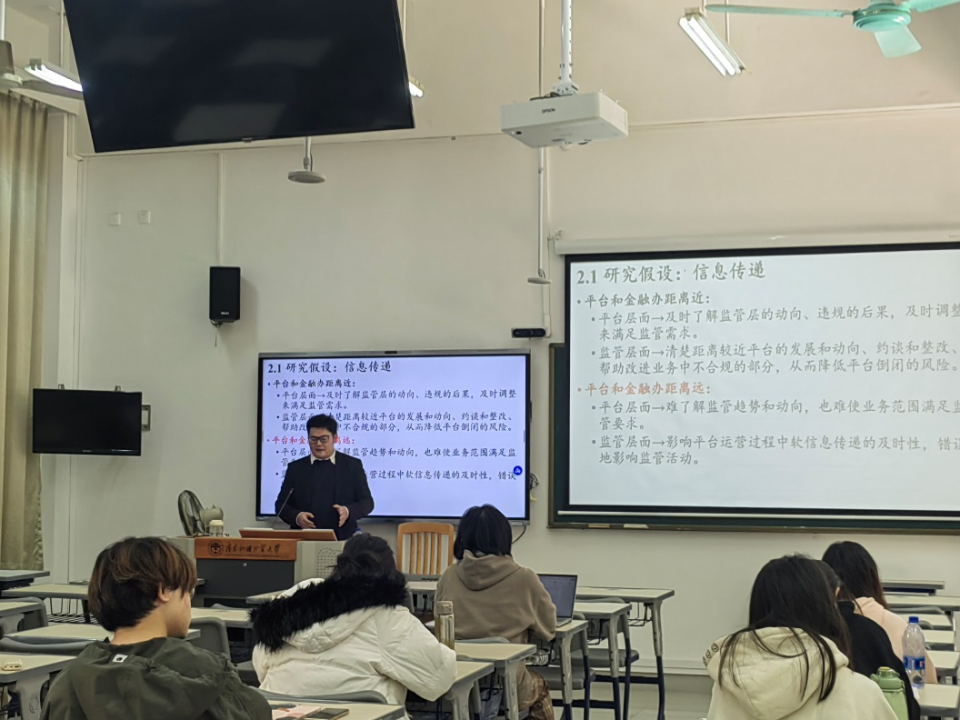 1月9日上午,华南农业大学陈霄副教授为我院学生开展了“中国P2P网络借贷平台倒闭原因和后果的实证研究”的专题讲座。讲座由我院金融系副主任邓洁主持。