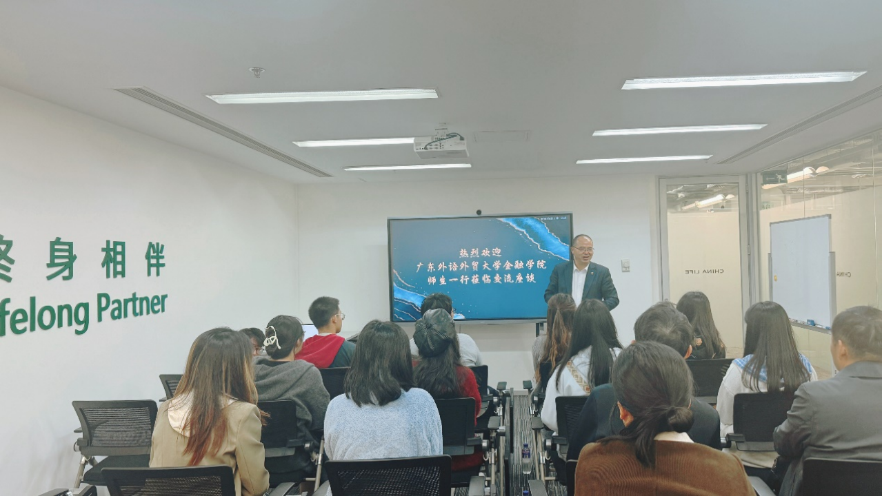 随后,我院师生前往中国人寿保险(海外)澳门分公司和广发银行澳门分行调研。广发银行澳门分行同业部张尧经理以具体案例阐述了银行风险管理的实务应用;零售金融部、零售信贷部的李滨滨总经理介绍了广发银行澳门分行的零售特色业务,重点介绍了保费融资这一产品,展现了澳门银行业与保险业的协同发展。