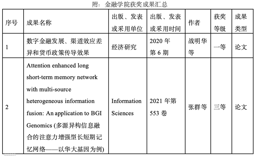 我院科研立项数和优秀科研成果稳中有进。学院教师本年度立项国家自然科学基金项目3项、教育部人文社科基金项目1项;在《经济学季刊》《管理科学学报》《金融研究》《世界经济》等高档次刊物发表论文70余篇。其中,姚海祥教授的论文1篇在金融学科国际一流期刊Journal of Banking and Finance上发表。我院张浩教授、杨菁菁教授以及刘浩副教授与展凯教授合作的论文各1篇分别获评第十届中国金融管理年会优秀论文特等奖、一等奖及三等奖。