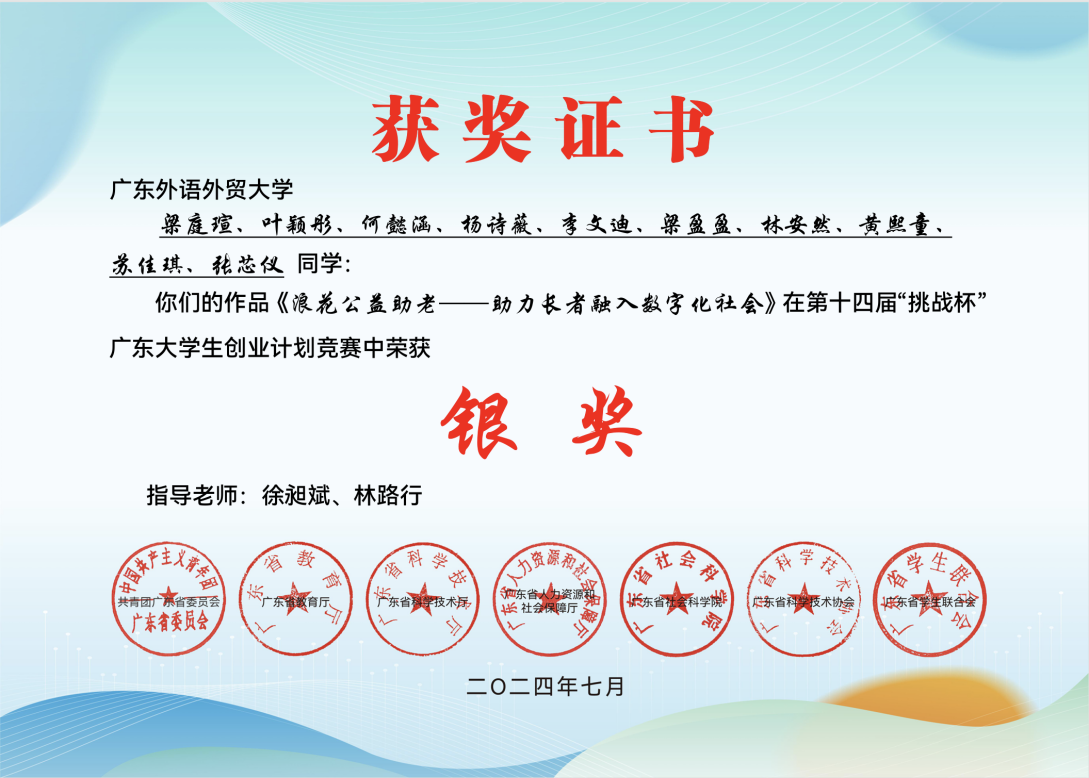 我院获第十四届“挑战杯”广东大学生创业计划竞赛银奖