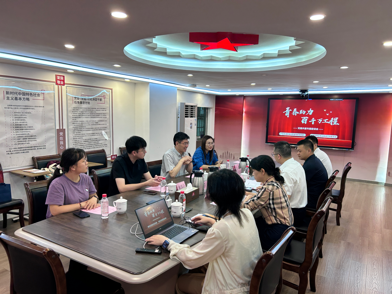 5月27日下午,学院党委书记徐昶斌、副书记张璇、创新创业教育中心党支部(以下简称“双创”党支部)书记林路行及“百千万工程”青年突击队“星火虹推”团队学生代表前往东山街道办事处,与东山街党工委书记张新宇,副书记欧阳慧,街道办事处副主任王一平等开展“百千万工程”项目结对暨党建共建专题座谈会。