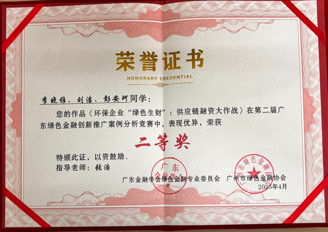 据悉,我院学生团队在第二届广东绿色金融创新推广案例分析竞赛中荣获二等奖1项,三等奖1项。本次交流也是体现了广州市绿色金融协会对我院在绿色金融领域人才培养质量的肯定,以此为契机,加深我院与协会的深度交流合作。
