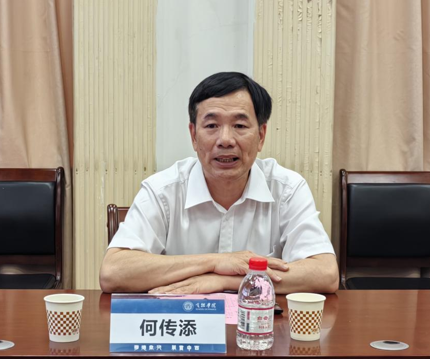 2025年7月9日下午,我院在大学城校区院系楼401会议室召开《国家金融学》课程建设座谈会。校党委常委、副校长何传添出席会议并讲话。会议由金融学院院长展凯主持。副院长邓超、院长助理刘浩、保险系主任丁宇刚、金融工程系主任梁裕珩、保险系教师张琰、金工系教师钟茜等参加会议。