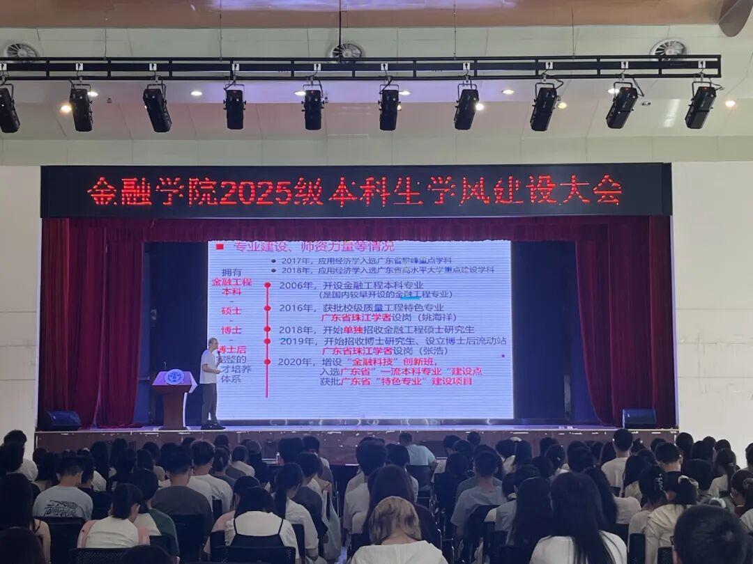 9月10日上午,我院2025级本科生学风建设大会在大学城校区学生活动中心举行。学院副院长邓超、党委副书记张璇及各系主任、教务办老师出席,2025级全体本科新生参会。会议由张璇主持。