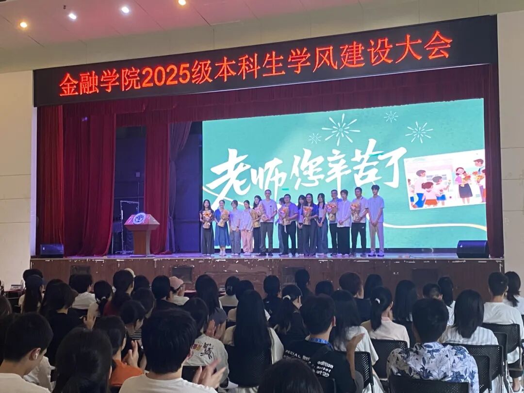恰逢教师节,2025级新生代表手捧鲜花,向在场教师鞠躬献花,随后全体师生合影留念,学生齐声祝福老师们“教师节快乐”,定格感恩瞬间。