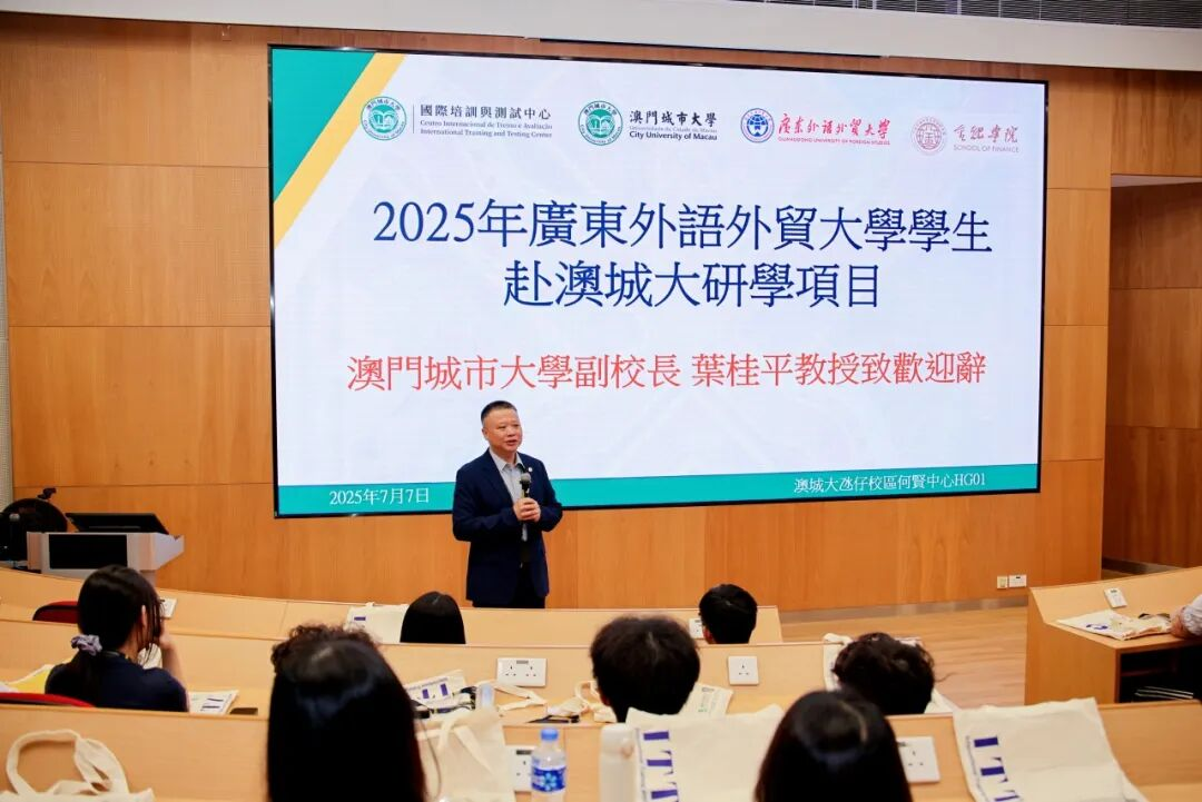 本次联合培养项目由广外金融学院与澳城大国际培训与交流中心(ITTC)联合主办,旨在响应粤港澳大湾区金融科技发展对高端人才的迫切需求。项目伊始,即受到澳城大校方的高度重视。在7月7日举行的项目启动仪式上,澳城大副校长叶桂平教授热烈欢迎广外师生到来。他介绍了澳门作为中西文化交汇地及粤港澳大湾区、深合区核心成员的独特优势,阐述了澳城大国际化、跨学科的办学理念与最新发展动态。叶校长寄语学员们珍惜此次学习机会,通过澳城大这个窗口,拓宽国际视野,深化对金融科技前沿的认知,为未来深造与发展奠定更坚实的基础。