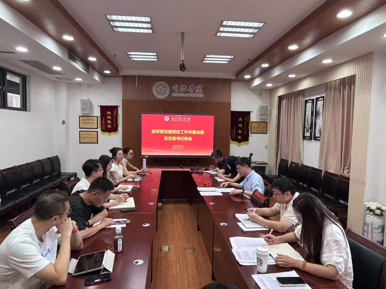 2025年9月19日下午,金融学院在院系楼401会议室召开党建思政工作推进会暨党支部书记例会。会议围绕本学期党建重点工作推进以及师德师风建设月部署等内容展开,进一步统一思想、明确任务,推动学院党建工作高质量发展。学院党委委员、师生党支部书记代表、党政办主任、党委组织员、党务秘书等出席会议。会议由党委书记徐昶斌主持。