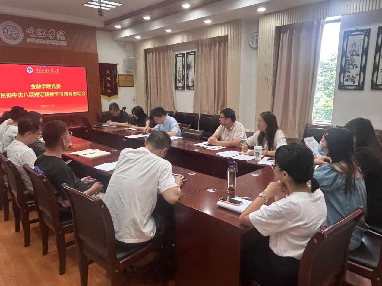 2025年9月19日下午,金融学院在院系楼401会议室召开党委理论学习中心组(扩大)学习会暨深入贯彻中央八项规定精神学习教育总结会。学院党委中心组成员出席会议,师生党支部书记代表、党政办主任、党委组织员、党务秘书等列席会议。会议由党委书记徐昶斌主持。