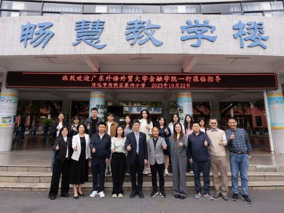 10月22日,在清新区百千万工程指挥部办公室副主任、我校“双百行动”驻清新区服务队队长叶开推动联络下,我院党委书记徐昶斌率队与前往清远市清新区第四小学(以下简称“清新四小”)、清远市清新区第四中学(以下简称“清新四中”),开展实地调研交流暨联学共建活动,推进“双百行动”落地,深化金融素养教育校地合作,开启金融学院与清新区两所学校的协同育人新篇章。